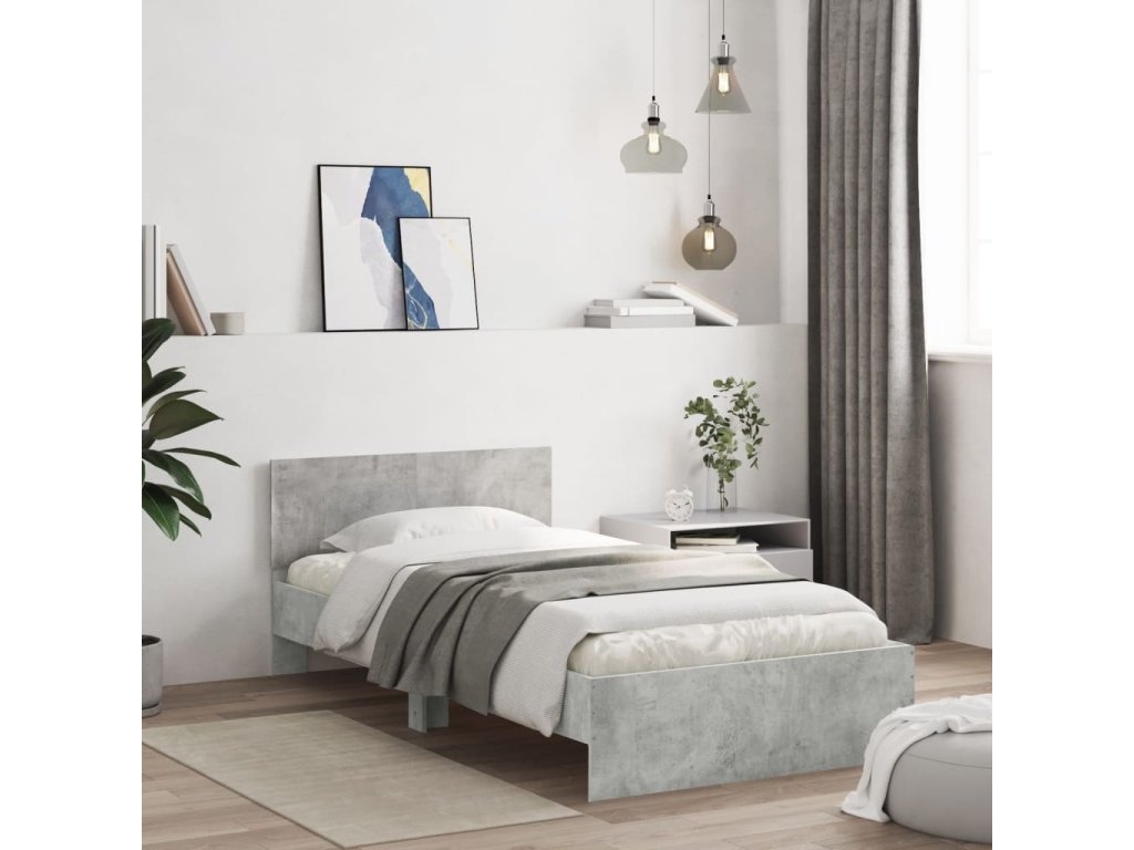 vidaXL Posteľný rám s čelom betónovo sivý 100x200 cm kompozitné drevo