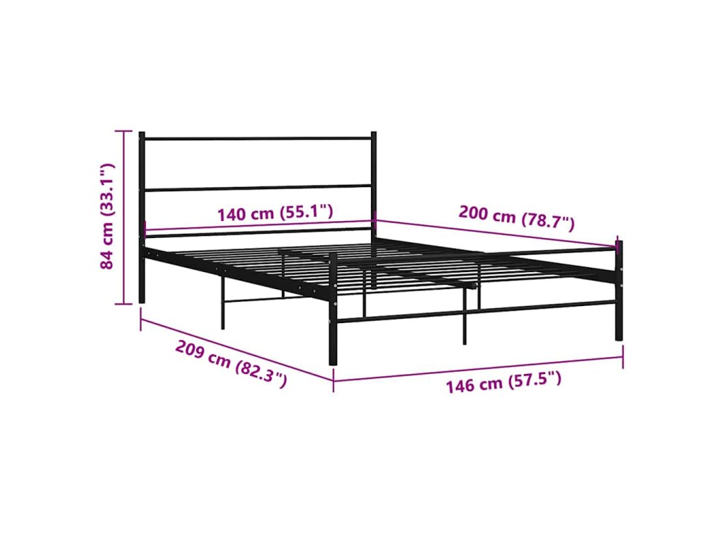 vidaXL Posteľný rám s čelom bez matraca čierny 140x200 cm kov