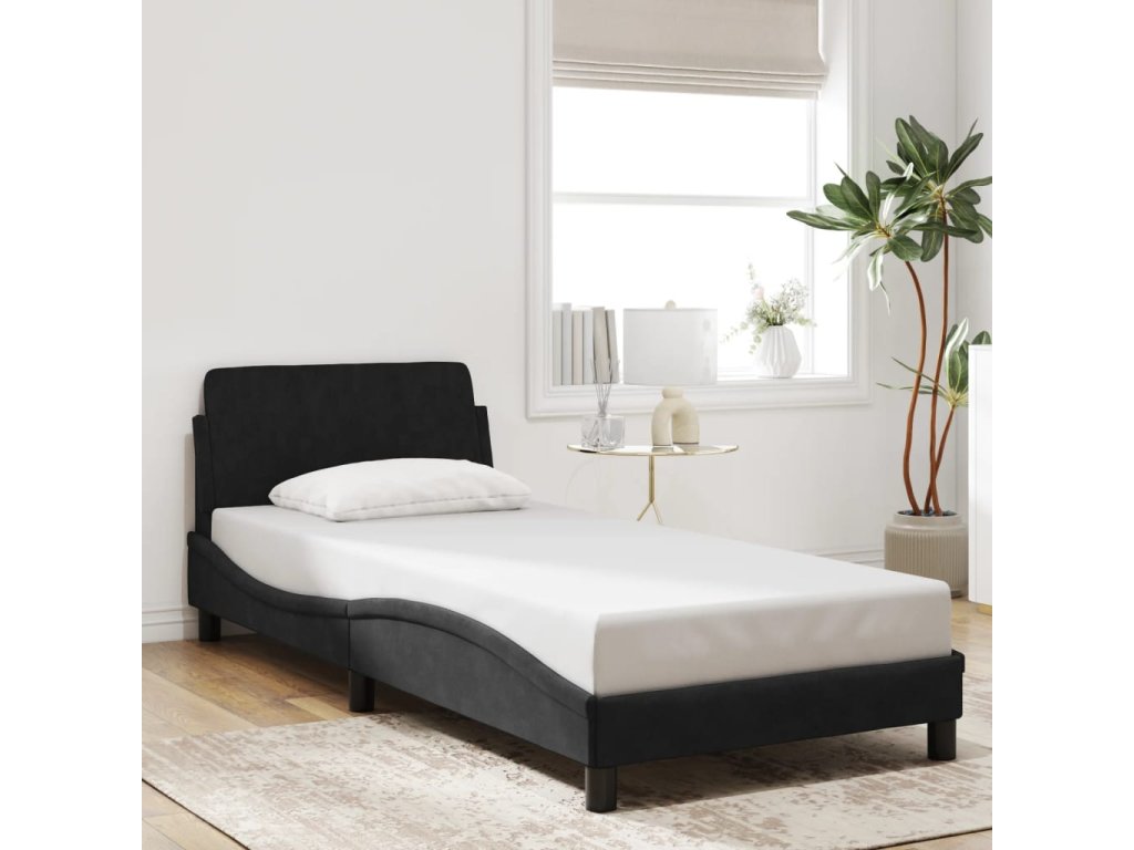 vidaXL Posteľný rám s čelom bez matraca čierny 90x200 cm zamat