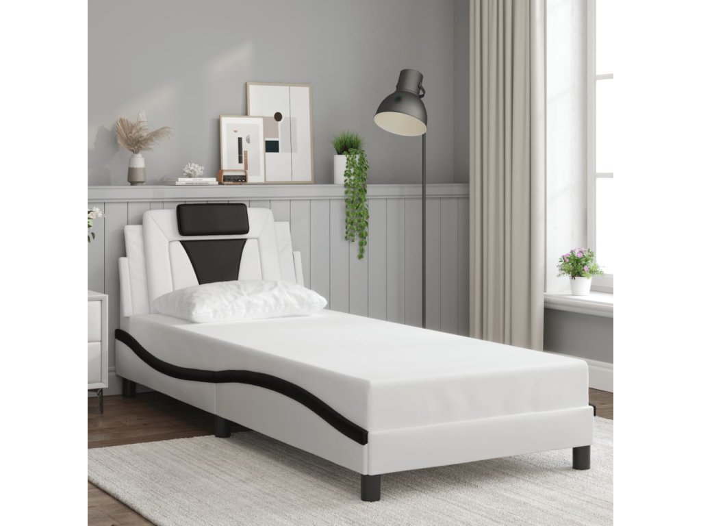 vidaXL Posteľný rám s čelom bielo-čierny 80x200 cm umelá koža