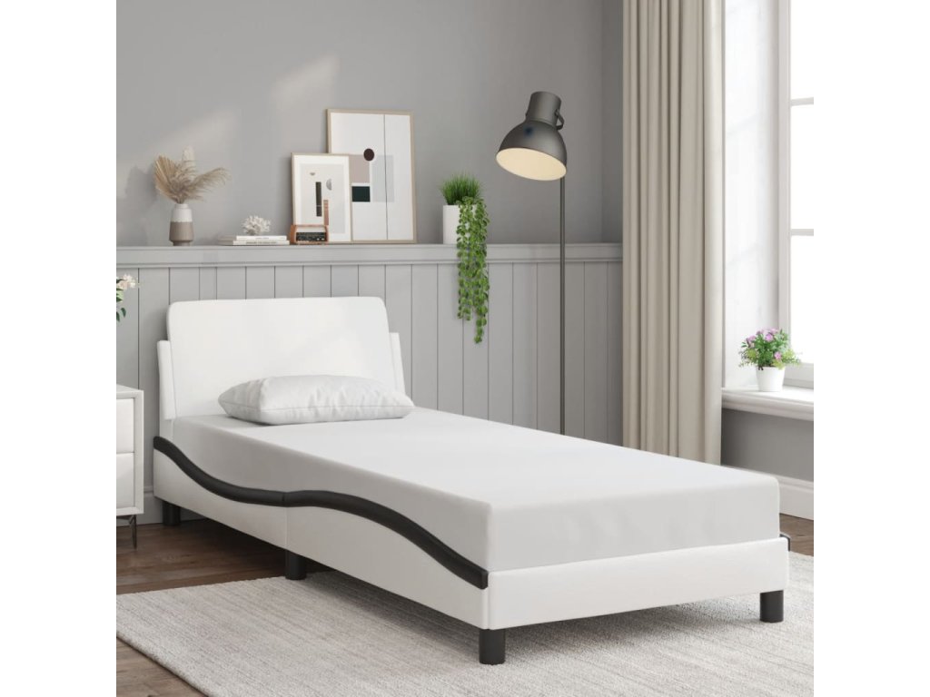 vidaXL Posteľný rám s čelom bielo-čierny 90x190 cm umelá koža