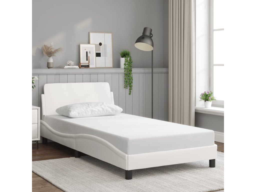 vidaXL Posteľný rám s čelom biely 100x200 cm umelá koža