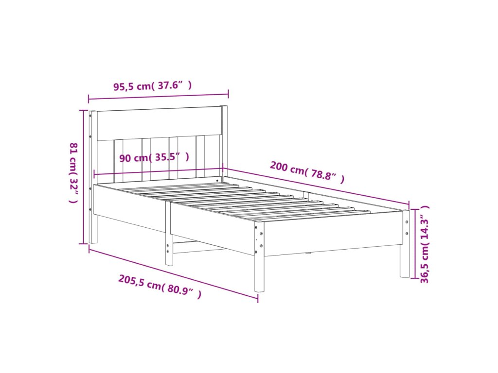 vidaXL Posteľný rám s čelom biely 90x200 cm masívna borovica