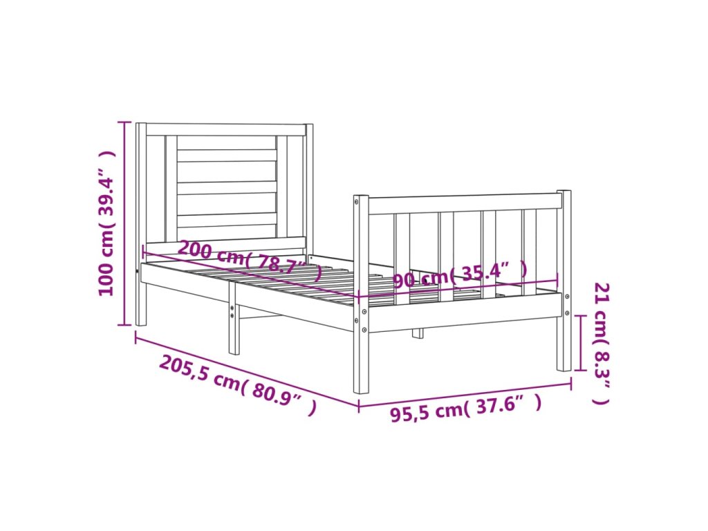 vidaXL Posteľný rám s čelom biely 90x200 cm masívne drevo