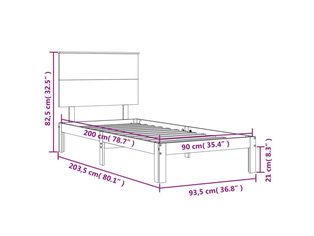 - Celkové rozmery postele: 203,5 x 93,5 x 82,5 cm (D x Š x V)