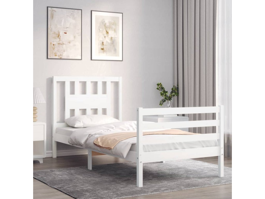 vidaXL Posteľný rám s čelom biely 90x200 cm masívne drevo