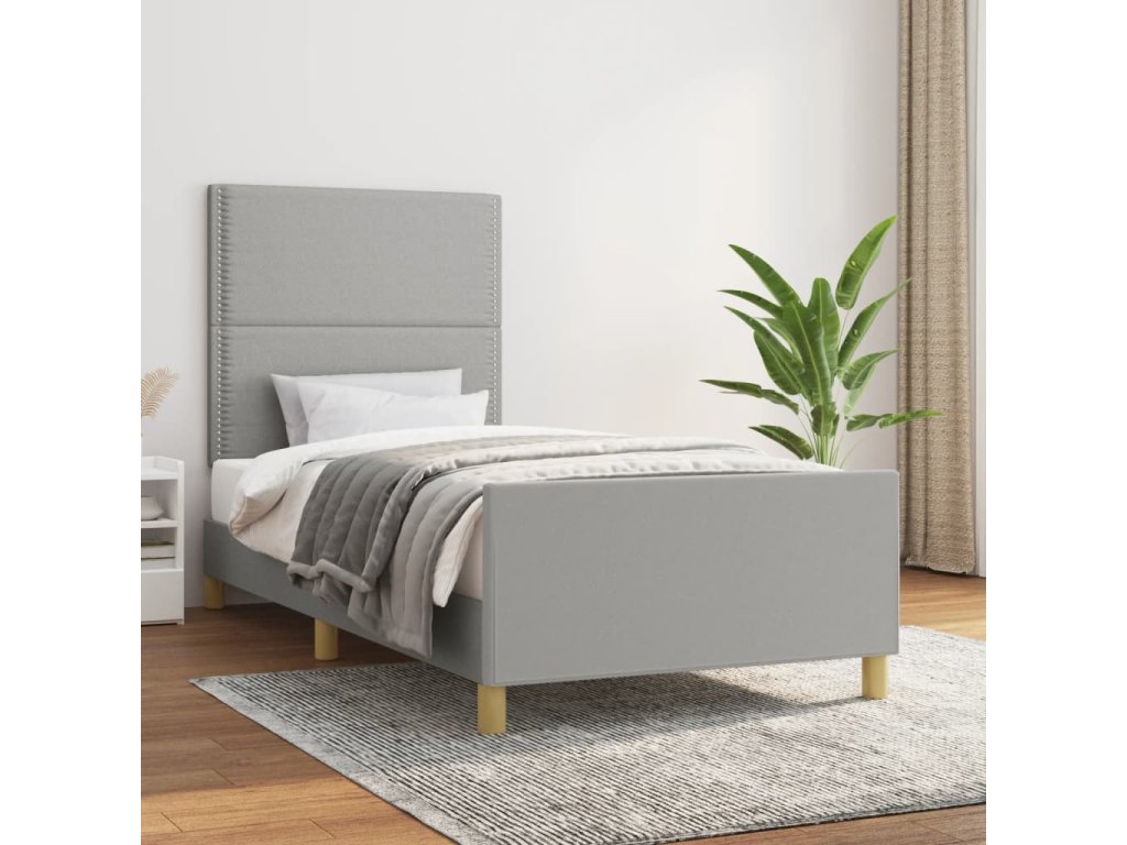 vidaXL Posteľný rám s čelom bledosivý 100x200 cm látka