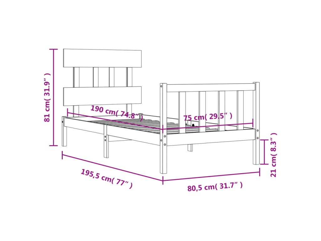 - Celkové rozmery postele: 195,5 x 80,5 x 81 cm (D x Š x V)
