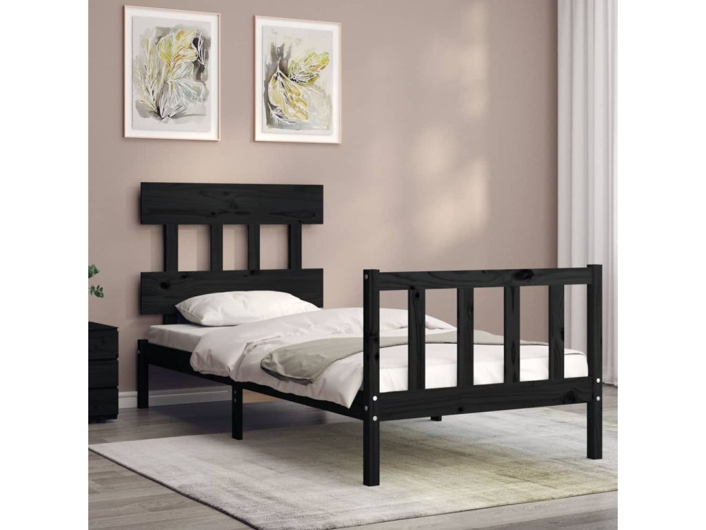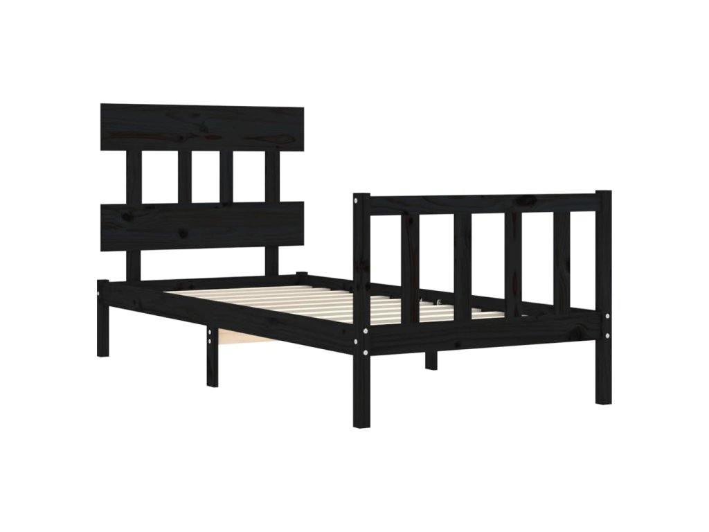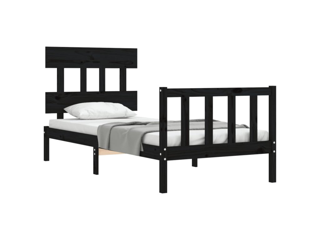 vidaXL Posteľný rám s čelom čierny malé jednolôžko masívne drevo