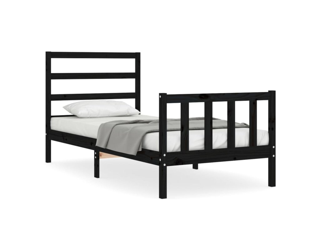vidaXL Posteľný rám s čelom čierny malé jednolôžko masívne drevo
