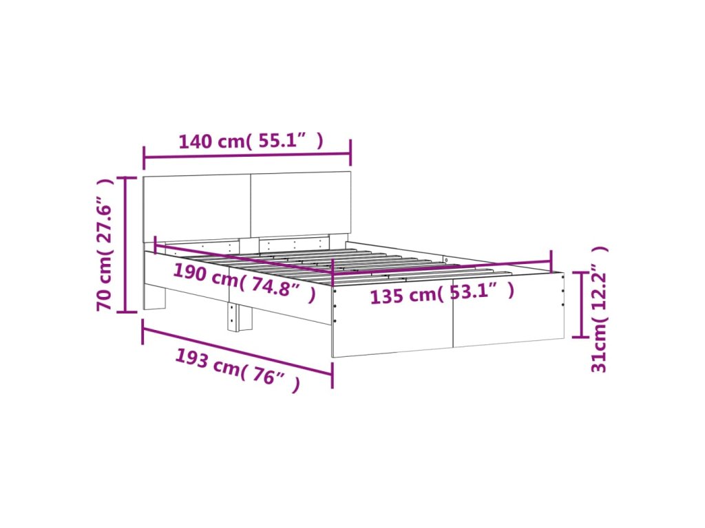 vidaXL Posteľný rám s čelom dub sonoma 135x190 cm