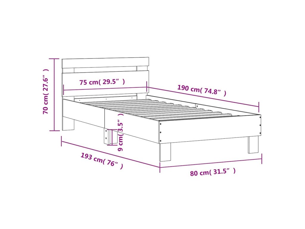 vidaXL Posteľný rám s čelom dub sonoma 75x190 cm kompozitné drevo