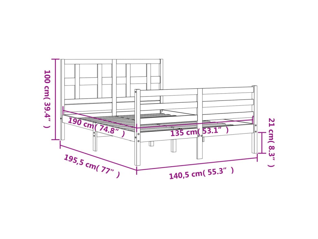 vidaXL Posteľný rám s čelom dvojlôžko masívne drevo