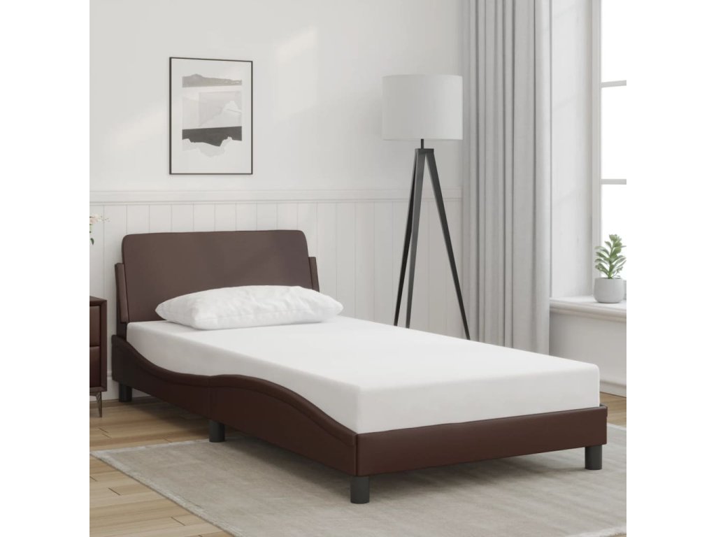 vidaXL Posteľný rám s čelom hnedý 100x200 cm umelá koža