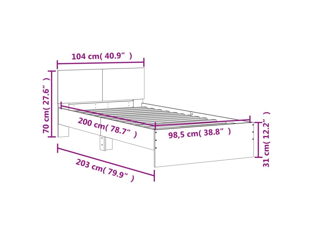 vidaXL Posteľný rám s čelom sivý sonoma 100x200 cm kompozitné drevo