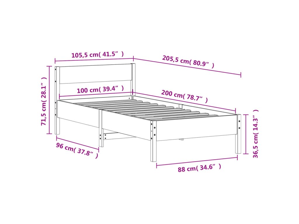 vidaXL Posteľný rám s čelom voskovo hnedý 100x200 cm borovicový masív