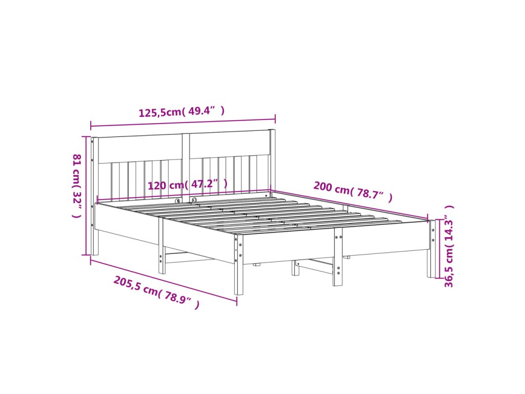 vidaXL Posteľný rám s čelom voskový hnedý 120x200 cm borovicový masív