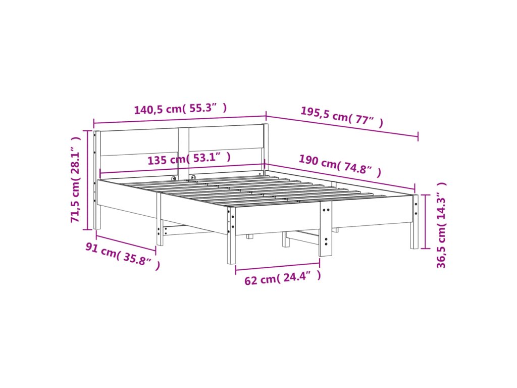 vidaXL Posteľný rám s čelom voskový hnedý 135x190 cm borovicový masív