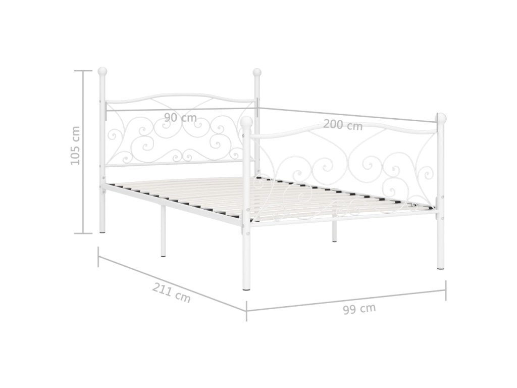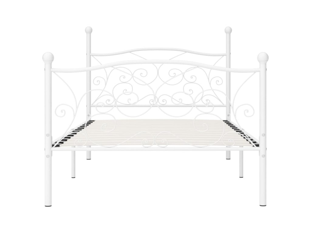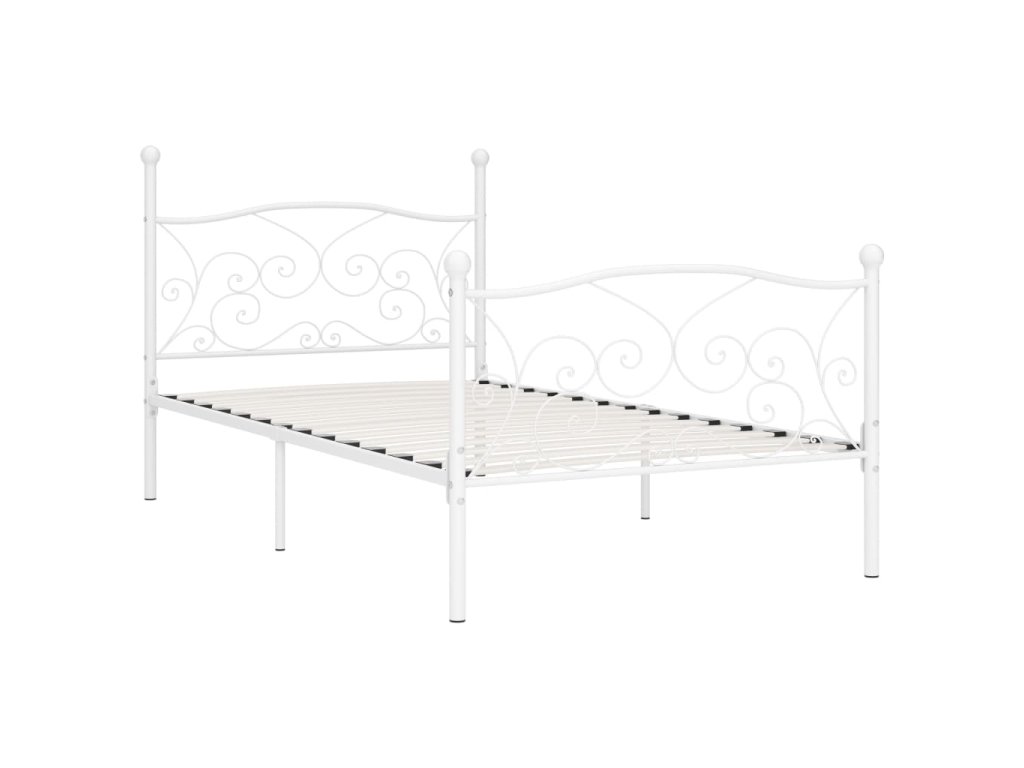 vidaXL Posteľný rám s lamelovým roštom, biely, kov 90x200 cm