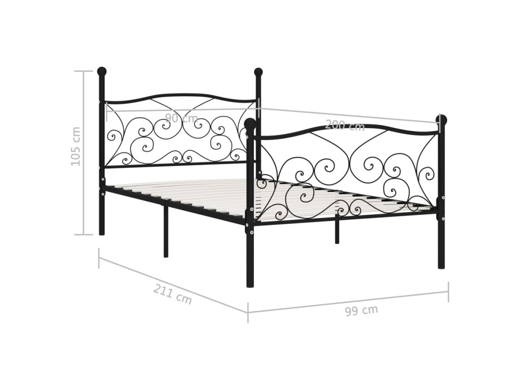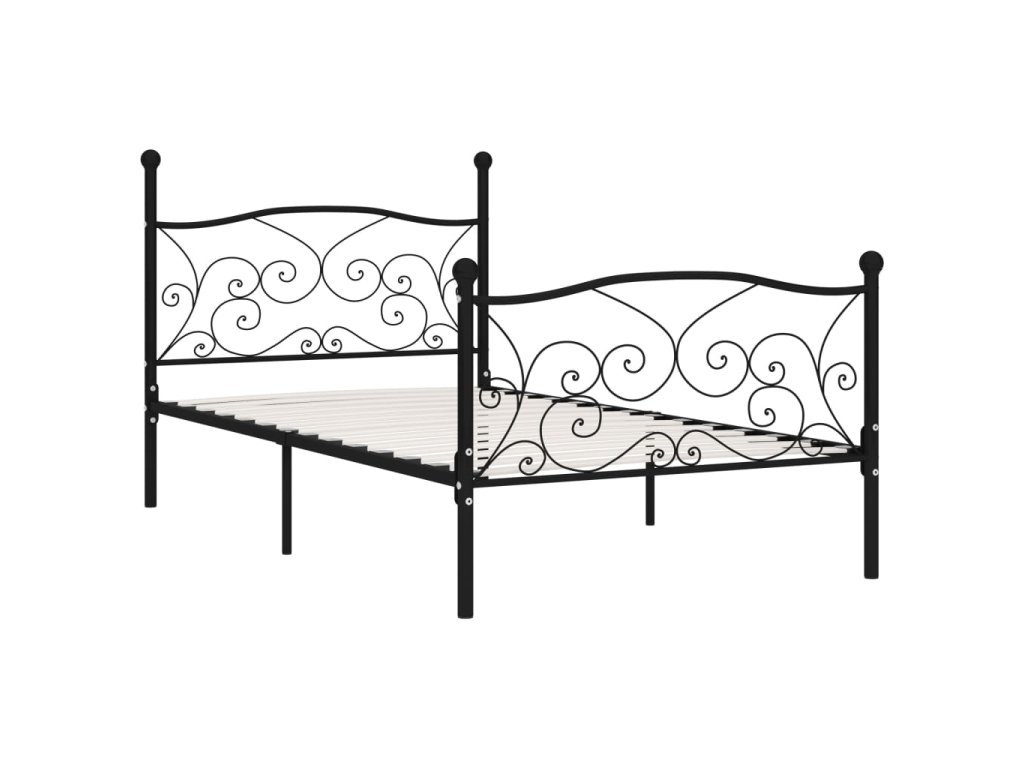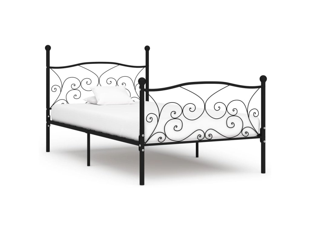 vidaXL Posteľný rám s lamelovým roštom, čierny, kov 90x200 cm