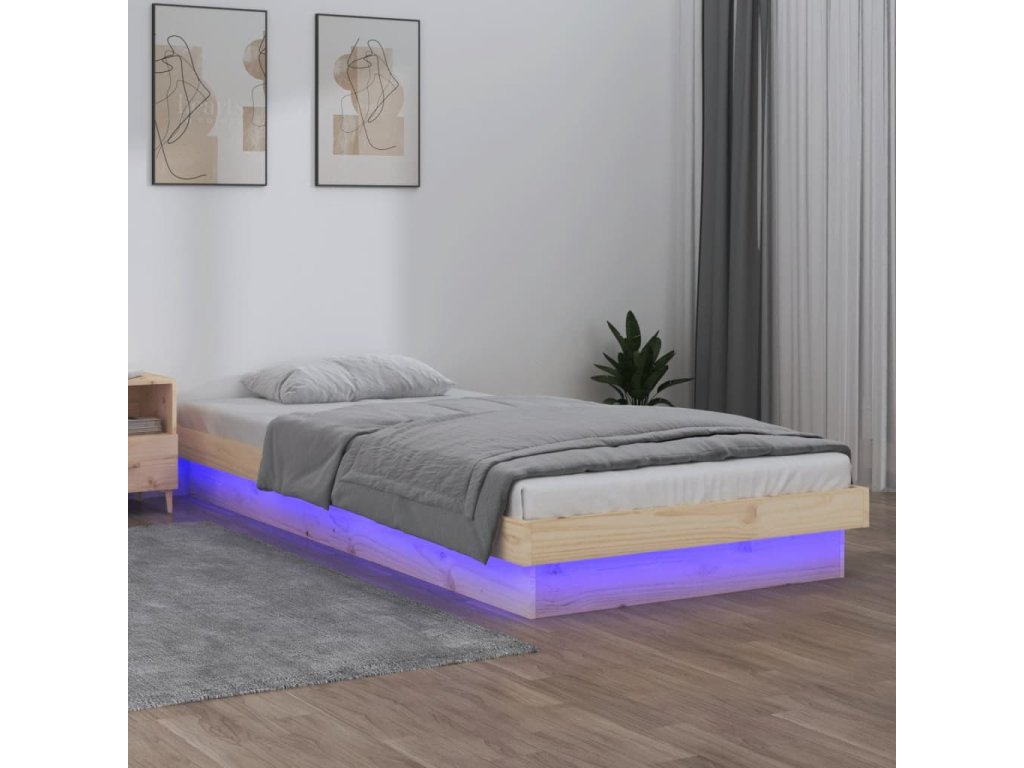 vidaXL Posteľný rám s LED 75x190 cm 2FT6 malé jednolôžko masívne drevo