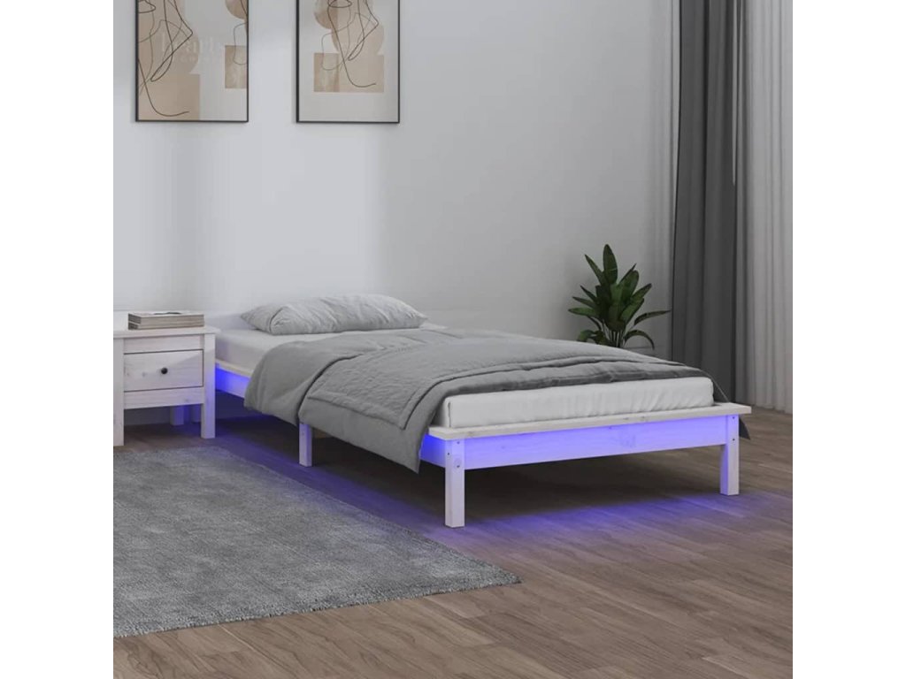 vidaXL Posteľný rám s LED biely 75x190cm malé jednolôžko masívne drevo