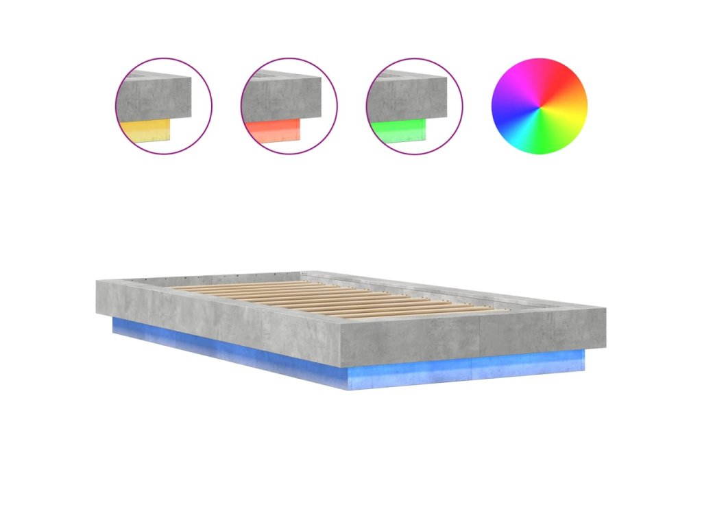 vidaXL Posteľný rám s LED svetlami betónový 90x190 cm kompozitné drevo