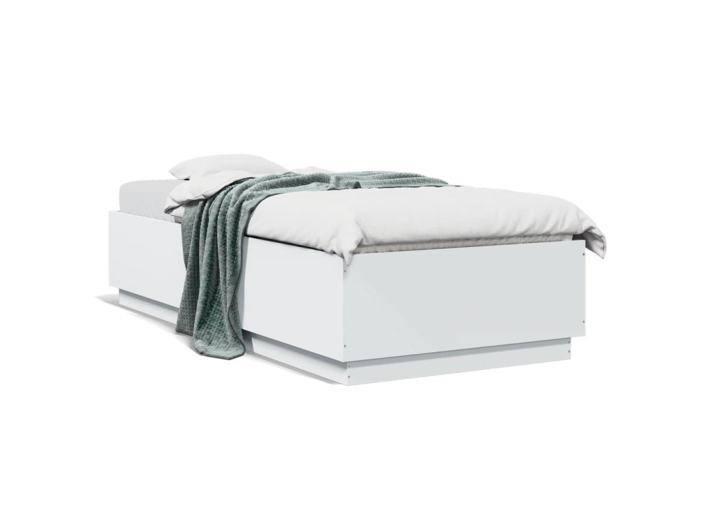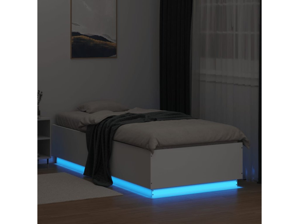 vidaXL Posteľný rám s LED svetlami biely 100x200 cm kompozitné drevo