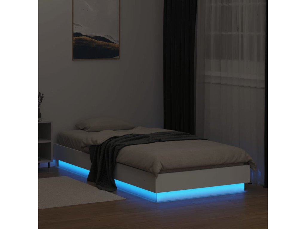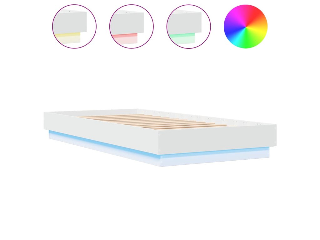 vidaXL Posteľný rám s LED svetlami biely 100x200 cm