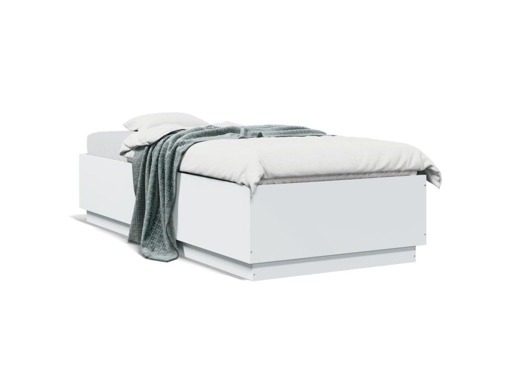 vidaXL Posteľný rám s LED svetlami biely 90x200 cm kompozitné drevo