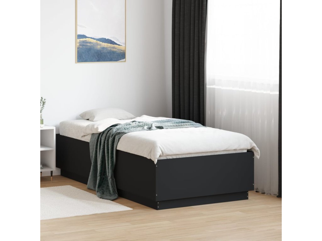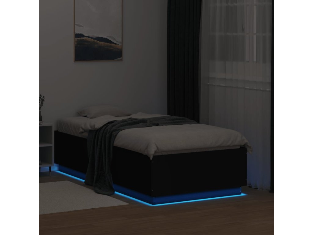 vidaXL Posteľný rám s LED svetlami čierny 75x190 cm kompozitné drevo