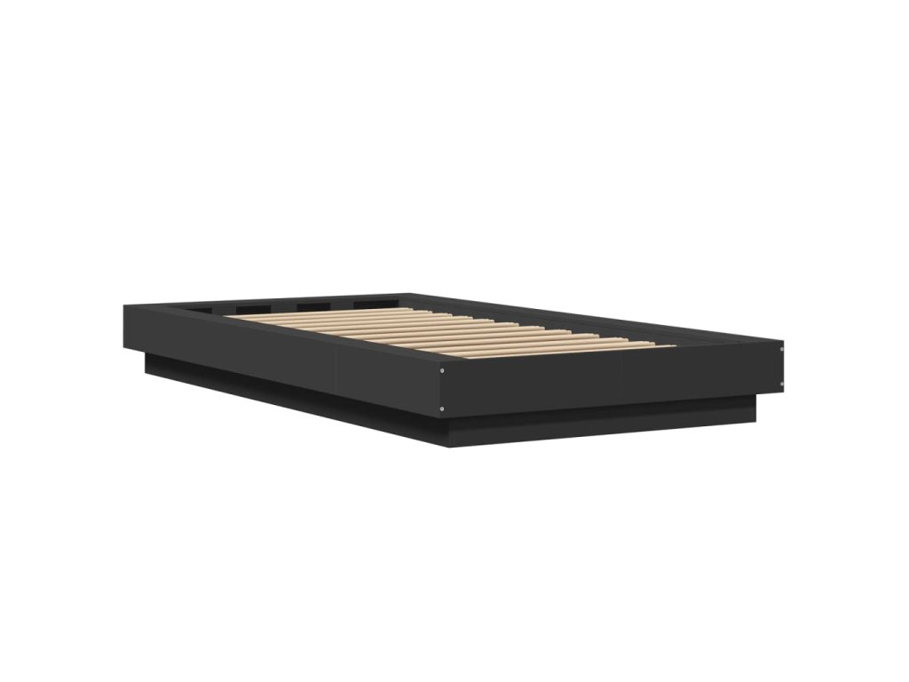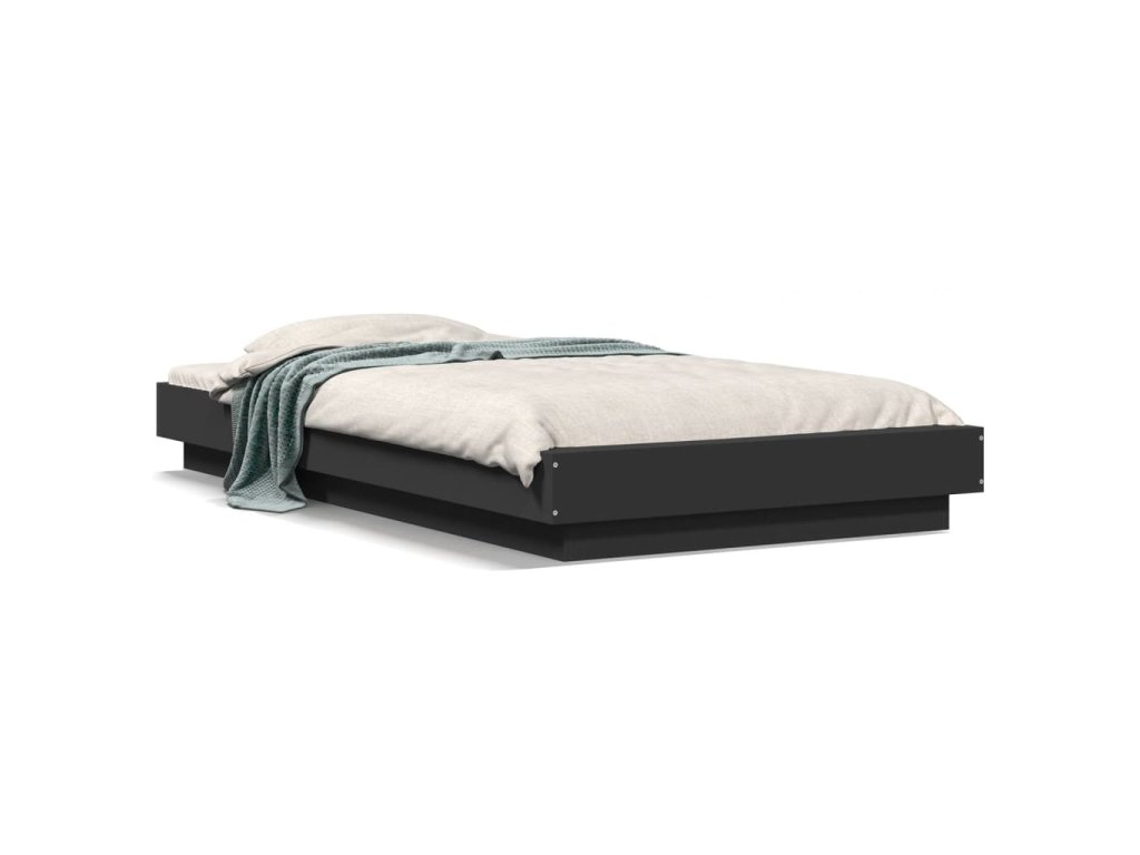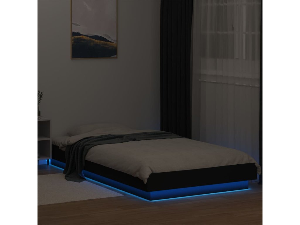 vidaXL Posteľný rám s LED svetlami čierny 90x200 cm kompozitné drevo