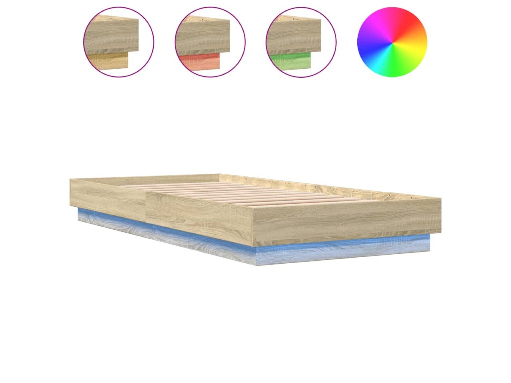 vidaXL Posteľný rám s LED svetlami dub sonoma 100x200 cm