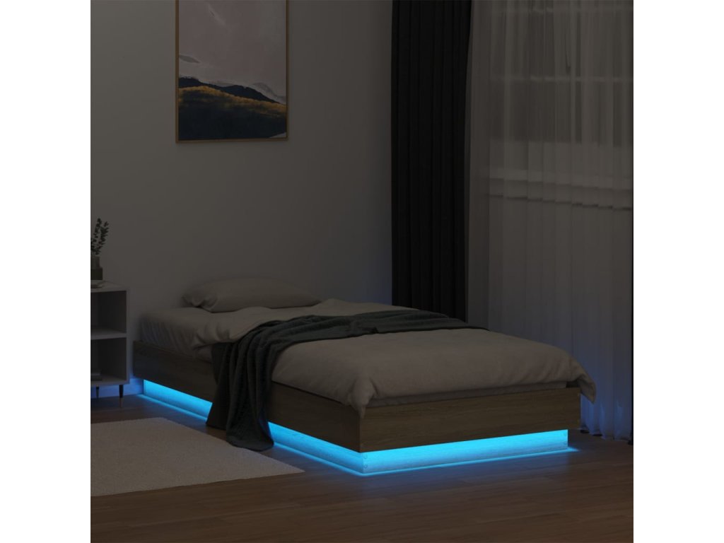 vidaXL Posteľný rám s LED svetlami dub sonoma 75x190 cm