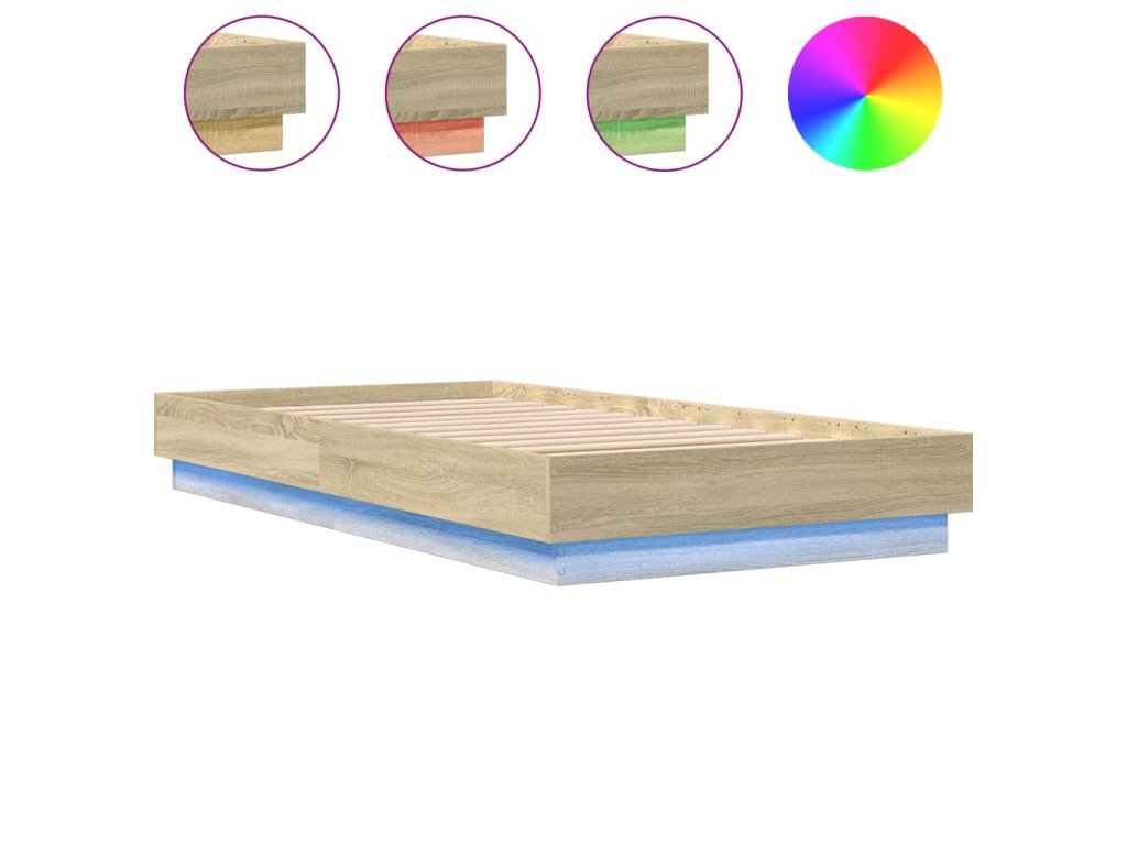 vidaXL Posteľný rám s LED svetlami dub sonoma 90x190 cm