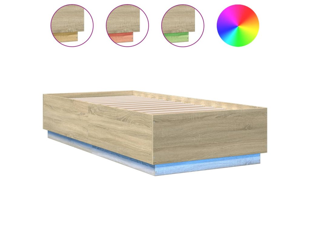 vidaXL Posteľný rám s LED svetlami dub sonoma 90x200 cm kompoz. drevo