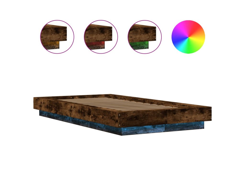 vidaXL Posteľný rám s LED svetlami dymový dub 100x200 cm kompoz. drevo
