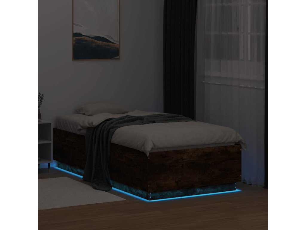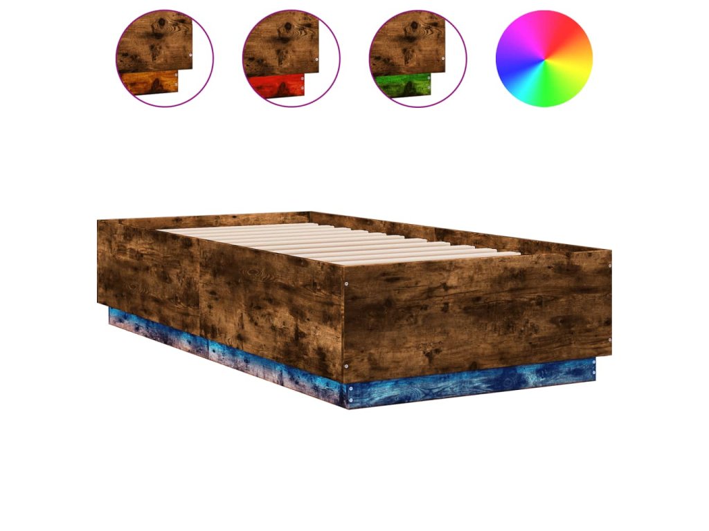 vidaXL Posteľný rám s LED svetlami dymový dub 75x190 cm kompoz. drevo