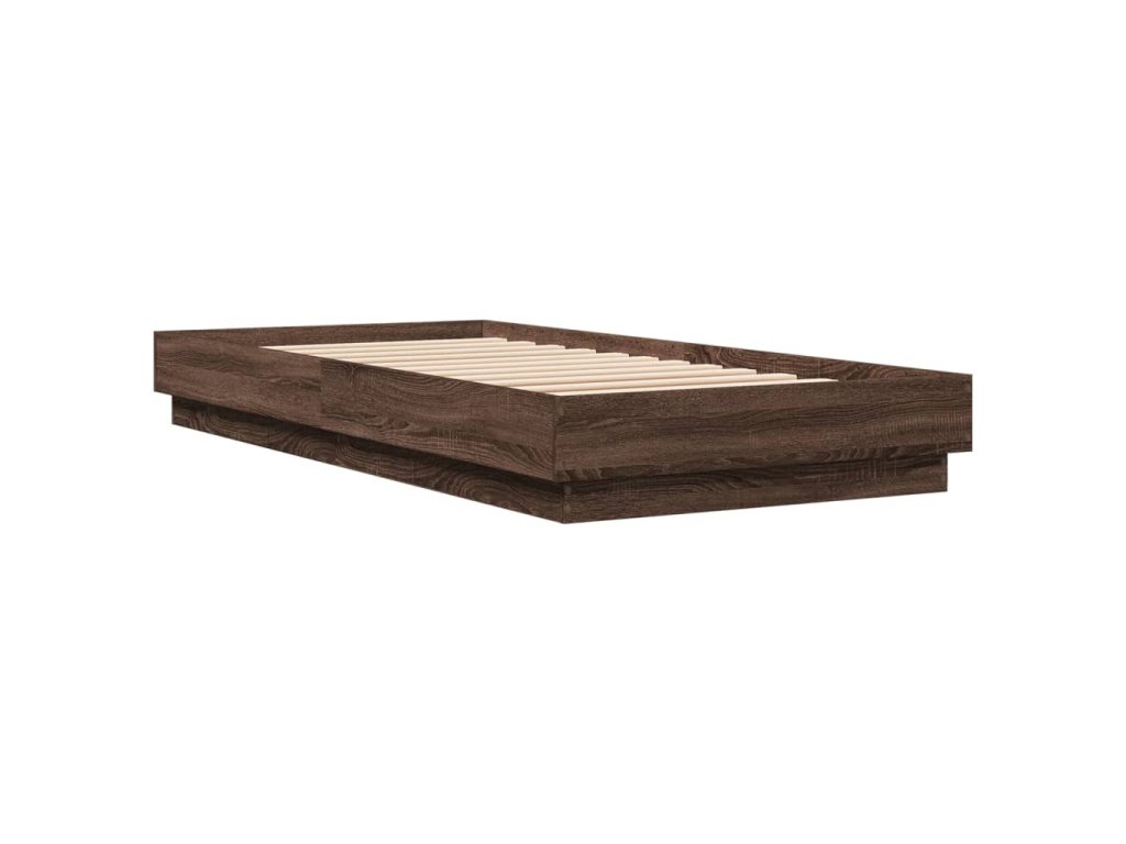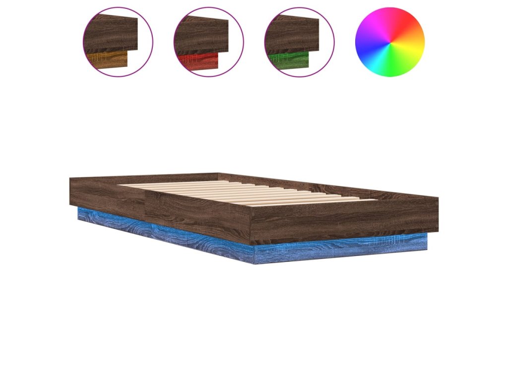 vidaXL Posteľný rám s LED svetlami hnedý dub 100x200 cm