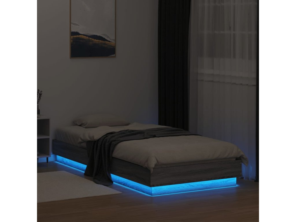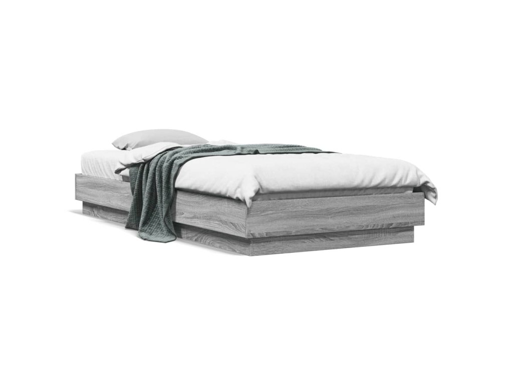 vidaXL Posteľný rám s LED svetlami sivý sonoma 90x200 cm