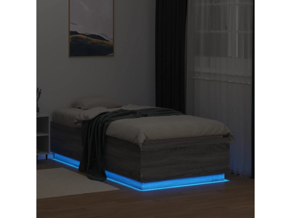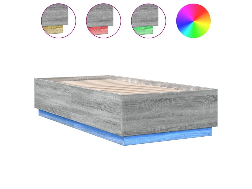 vidaXL Posteľný rám s LED svetlami sonoma 90x190 cm kompozitné drevo