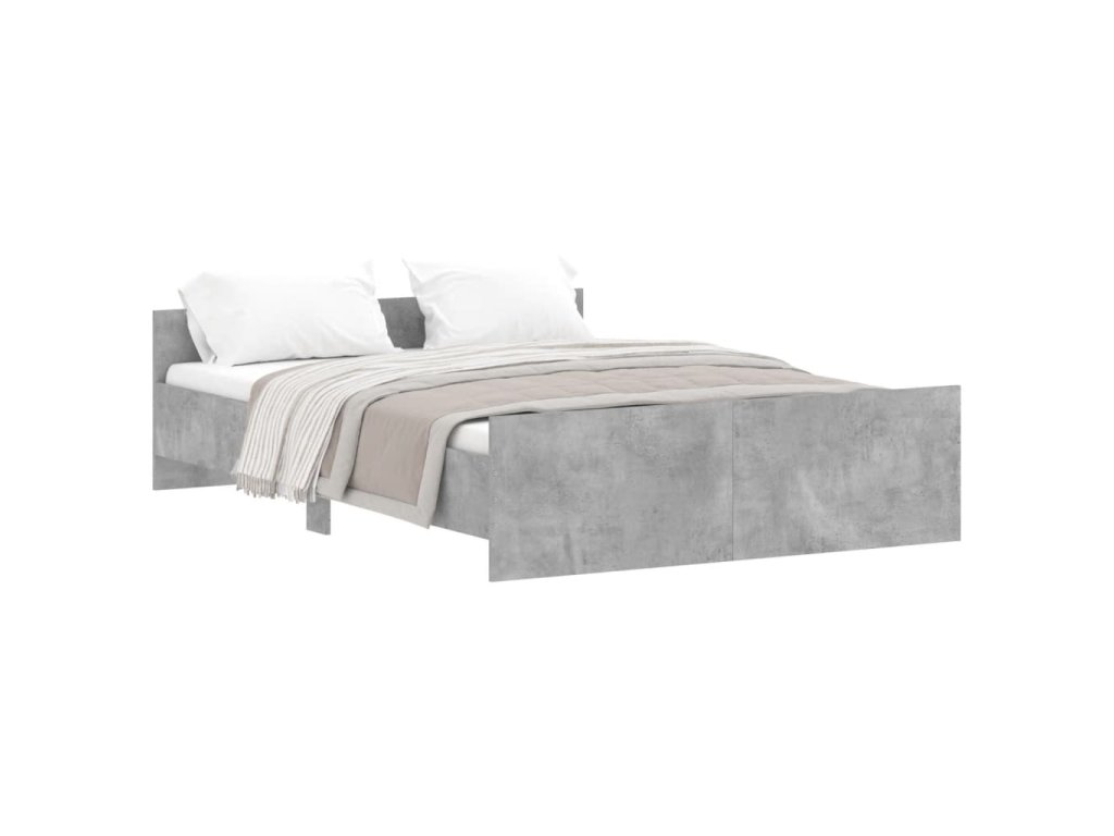 vidaXL Posteľný rám s predným a zadným čelom, betónovo sivý 135x190 cm