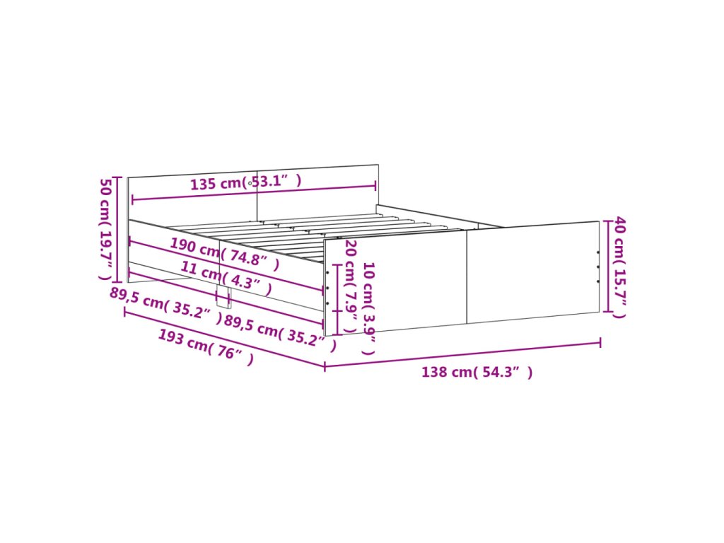 - Vhodné rozmery matraca: 135 x 190 cm (Š x D) (matrac nie je súčasťou balenia)