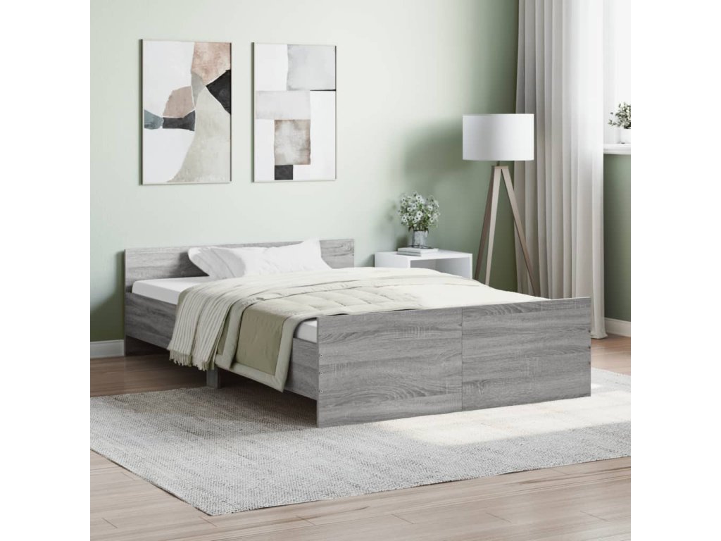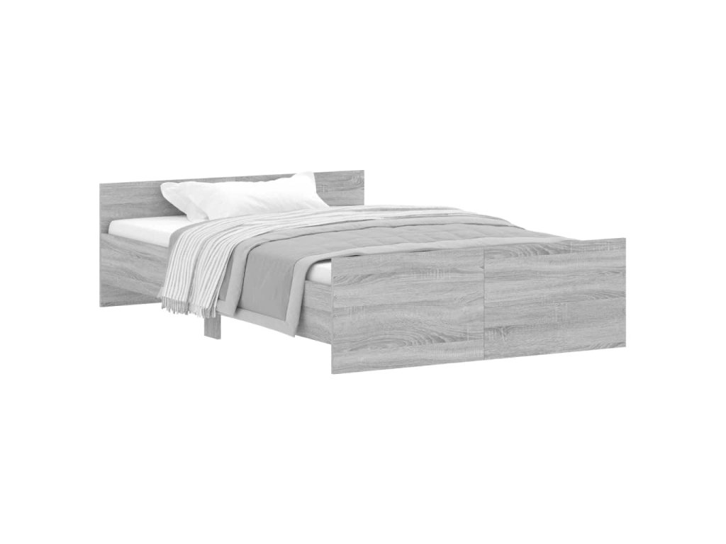 vidaXL Posteľný rám s predným a zadným čelom, sivá sonoma 120x190 cm