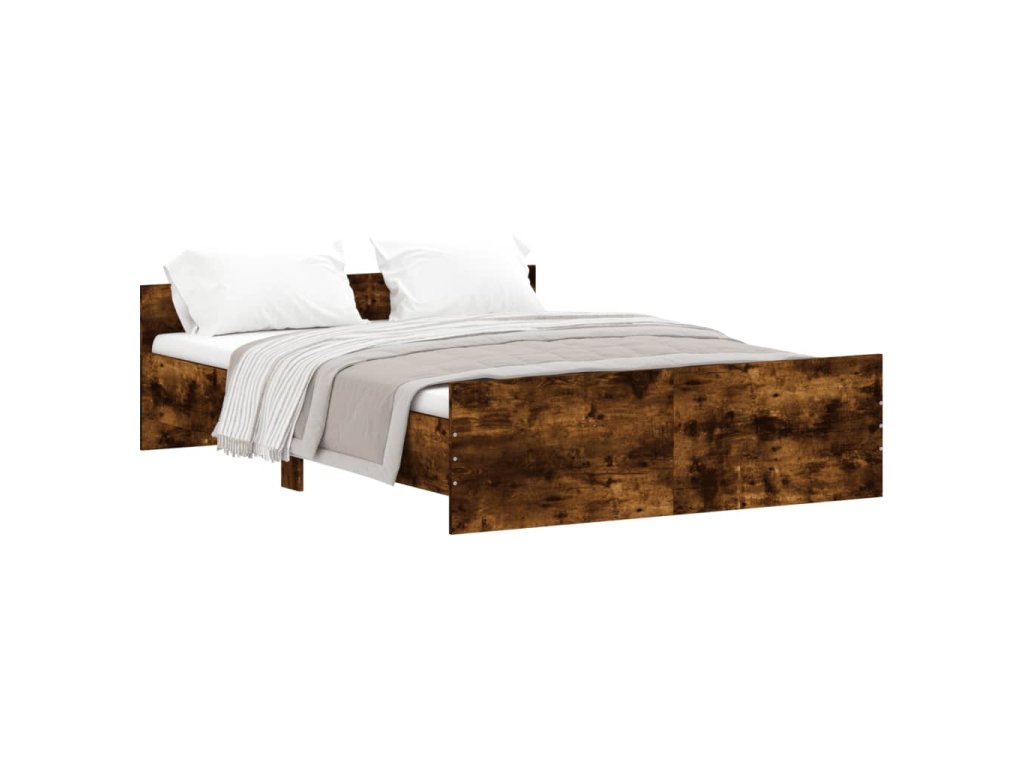 vidaXL Posteľný rám s predným a zadným čelom, tmavý dub 135x190 cm