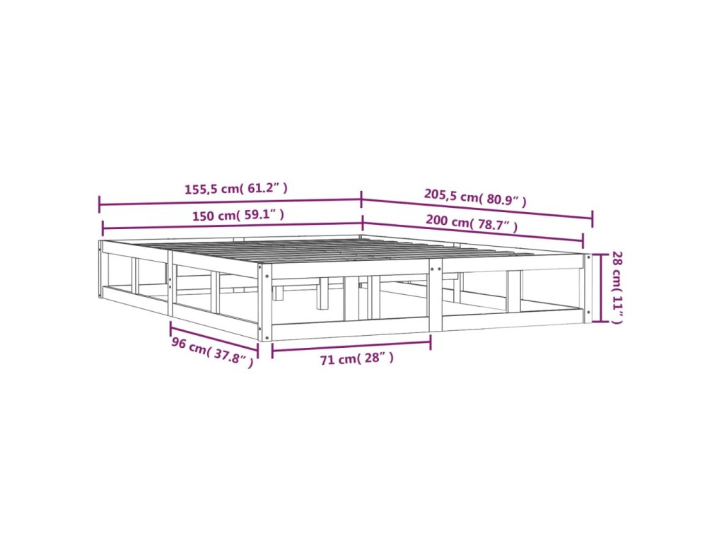 - Tento rám postele je vhodný pre matrac s rozmermi 150 x 200 cm (kráľovská veľkosť).