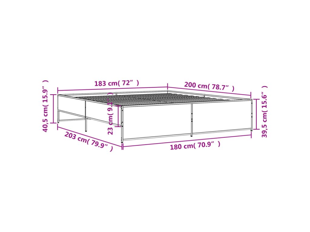 vidaXL Posteľný rám sivý dub sonoma 180x200 cm kompozitné drevo a kov