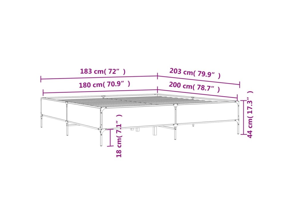 vidaXL Posteľný rám sivý dub sonoma 180x200 cm kompozitné drevo a kov