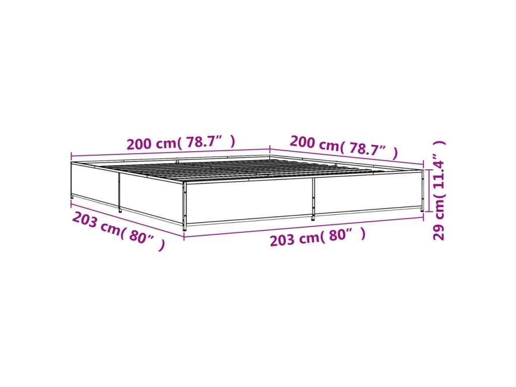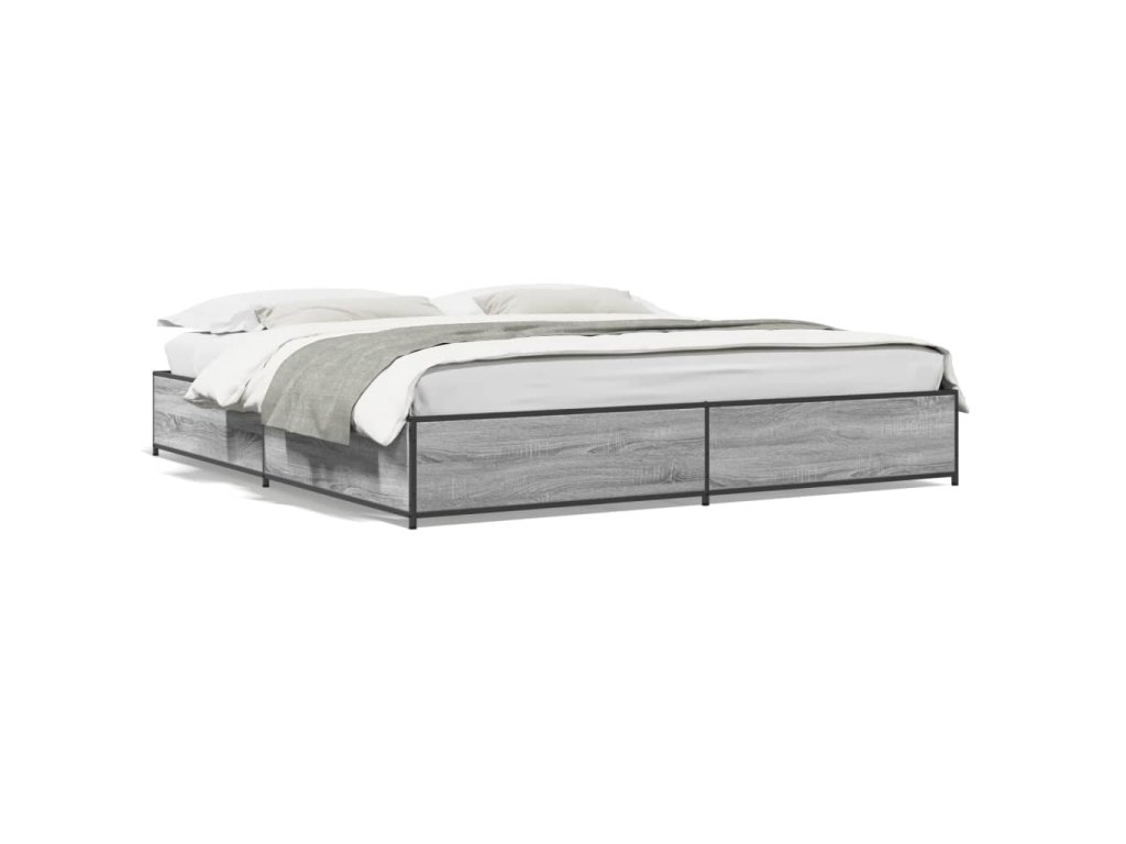 vidaXL Posteľný rám sivý dub sonoma 200x200 cm kompozitné drevo a kov
