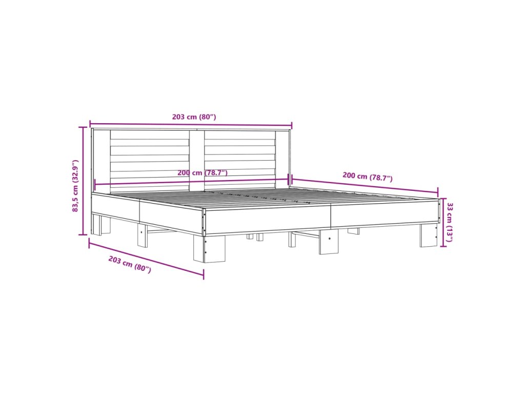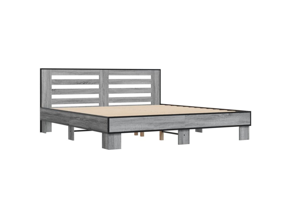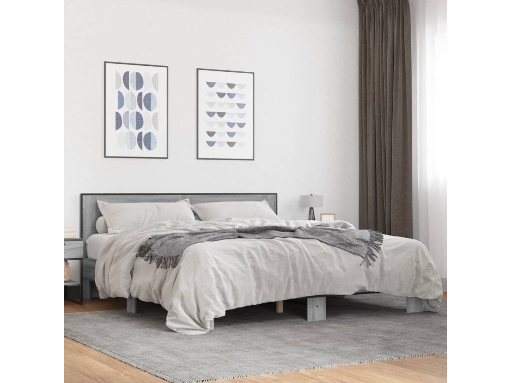 vidaXL Posteľný rám sivý dub sonoma 200x200 cm kompozitné drevo a kov